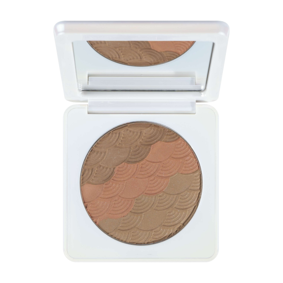 - Innovatieve kleurencombinatie van twee bronzing tinten en een zachte blush voor een